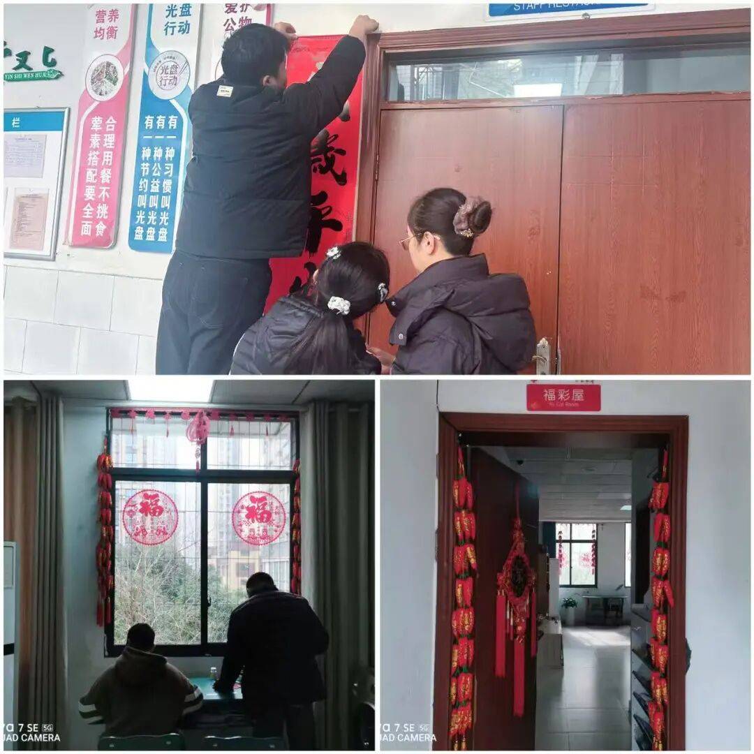 送新春·焕新颜,点缀夸姣家园。全院各部室组织工做人员取儿童联袂步履,糊口区、院坝、食堂等区域贴对联、贴福字、挂灯笼、饰彩灯,用满满的典礼感打扮院区,营制喜庆强烈热闹、连合向上的新春。